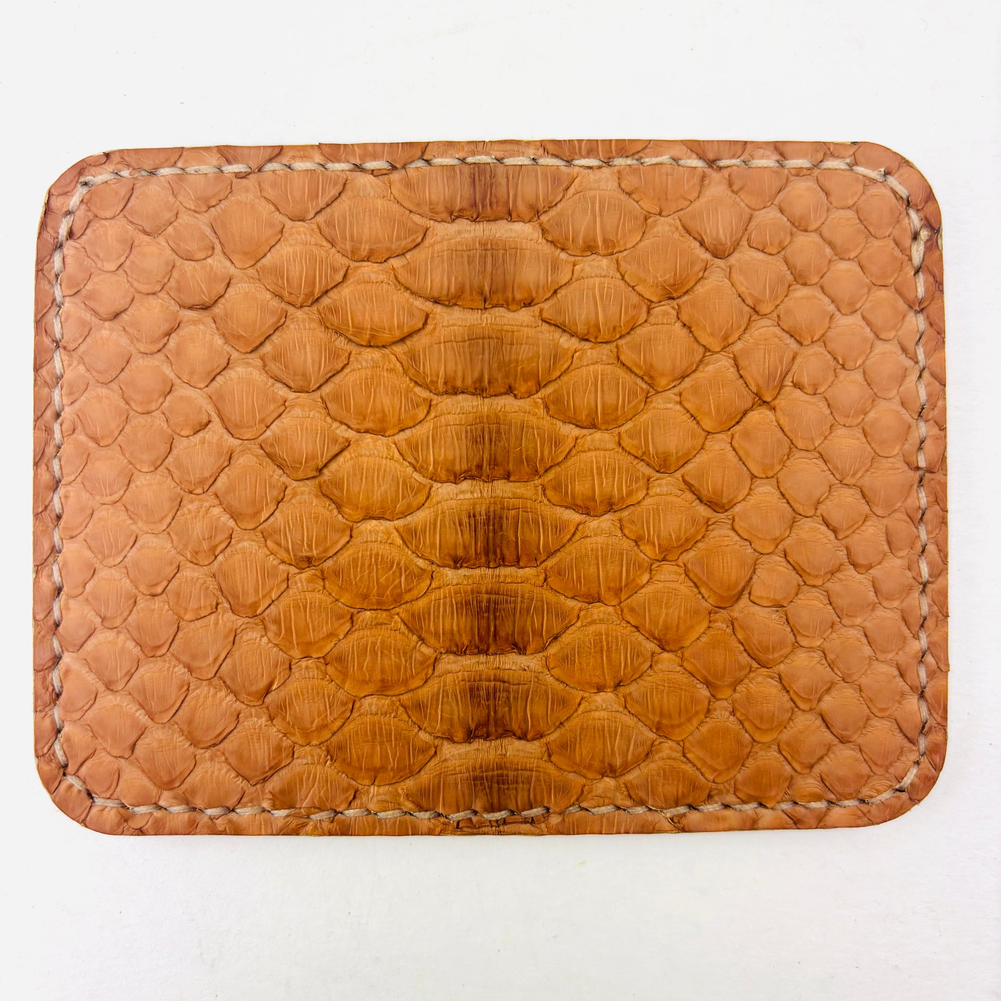 Sleek and durable this Buffalo Bones classic slim wallet holds more than you would expect. 2 card slots and 1 main cash pocket that will keep your essentials secure without adding unnecessary bulk. This piece is crafted from premium Italian leather and exotic Python leather and hand sewn with Ritza Tiger thread to ensure it lasts the test of time.